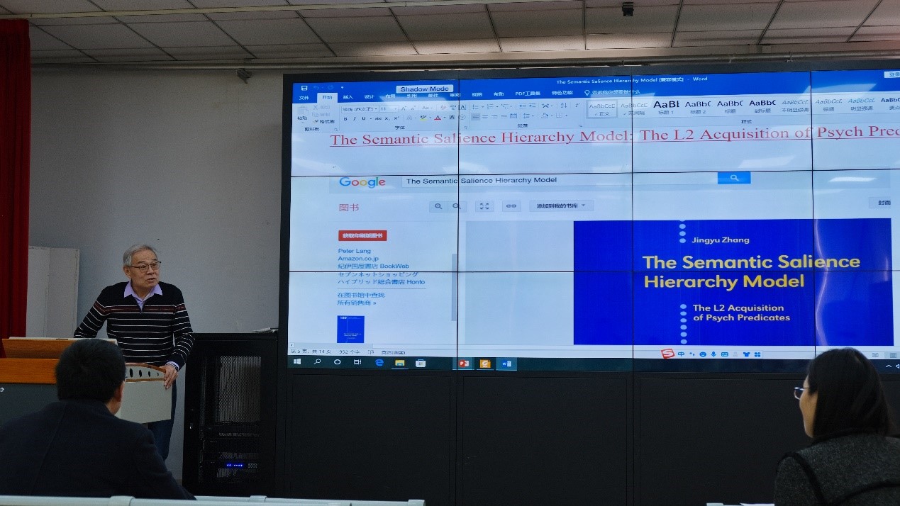 12月19日下午,西安外国语大学张京鱼教授应邀做客天游ty8检测中心官方登录2024年第17期“知新沙龙”,为全院师生作题为“语义突显层级模式与动结式的二语习得”的学术报告。讲座由天游ty8检测中心官方登录副院长董记华教授主持。