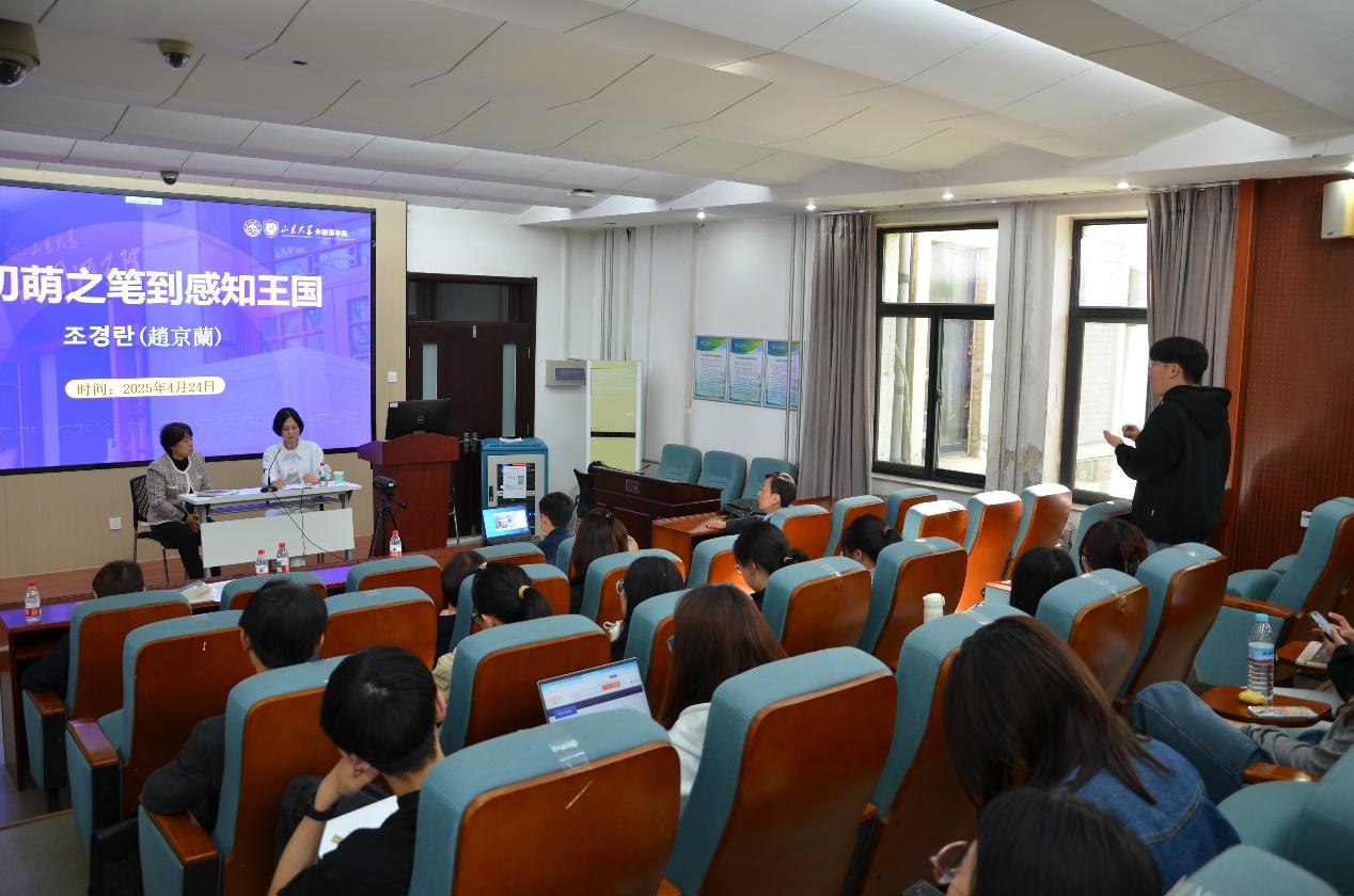 学术研讨环节,朴银淑就赵京兰的经典作品与作家展开了深度对话,针对作品中的人物命名逻辑与年龄设定等问题展开深入探讨。在互动环节,在场师生就作家、读者与作品的三元关系,以及文学翻译的标准和原则等踊跃提问,与赵京兰进行了积极交流,现场气氛热烈。