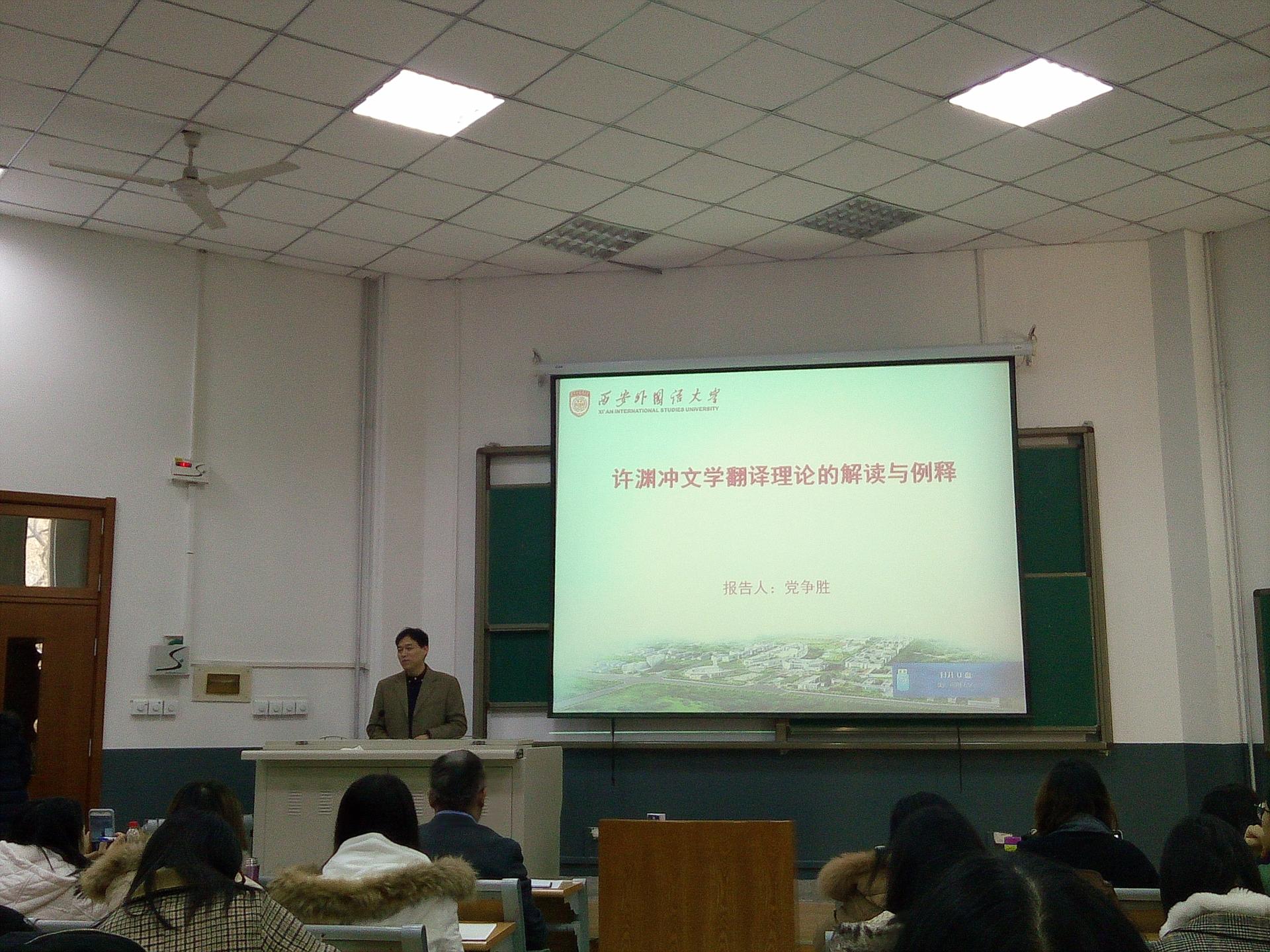 12月13日上午,西安外国语大学副校长党争胜教授做客天游ty8检测中心官方登录,为外院师生带来了主题为“许渊冲文学翻译理论的解读与例释”的学术讲座。本次讲座由天游ty8检测中心官方登录副院长马文教授主持,天游ty8检测中心官方登录众多师生参加了此次讲座。