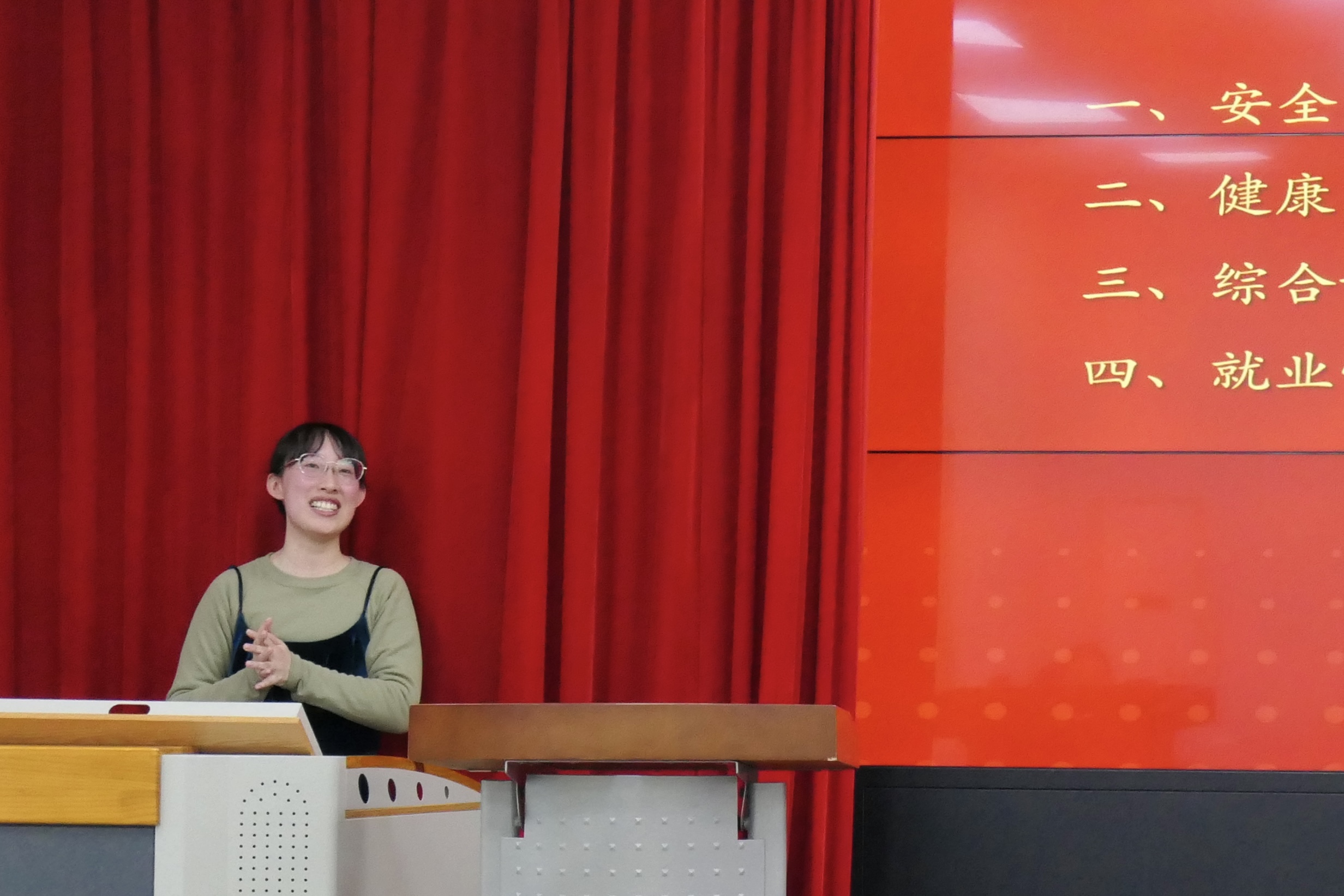 尤玉辉就研究生管理科新学期的工作进行了讲解,介绍了新学期注册、课程及成绩确认事项,并提醒各位同学明确海外学分和海外交流项目环节、专业实习、创新创业等各方面的要求,并为同学们讲解了研究生阶段的毕业条件以及学位授予的安排。张新苑强调了研究生日常管理的有关事项,提醒同学们严禁跨越三条底线:考试作弊、论文抄袭;违规电器、夜不归宿;违反法律法规、校纪校规。同时,她为同学们讲解了安全意识、健康生活、综合评价、就业等方面内容。刘婷婷从安全方面做了工作强调,叮嘱各位同学在身心健康、宿舍消防、信息网络等各方面增强安全意识。