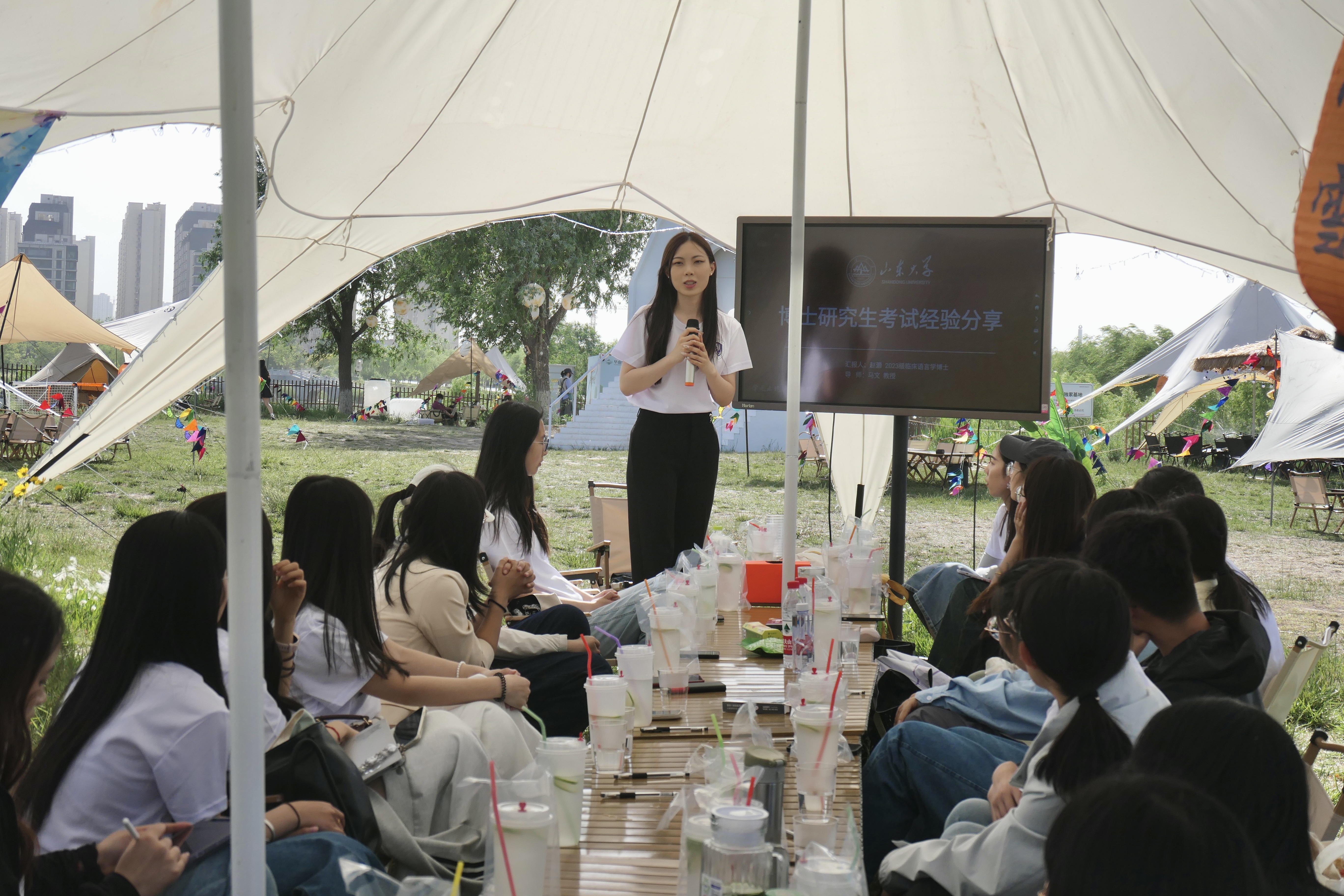分享会伊始,马蕾首先对同学们的到来表达了热烈欢迎与亲切问候,期望同学们在绿草如茵的轻松环境中畅所欲言,分享心得,相互交流。在分享会结束阶段,马蕾作简要总结,并就人生规划、人际社交、沟通礼仪和反思自省四个维度进行分享,对同学们寄予深厚期望。她建议同学们多在亲身实践中找到适合自身的人生规划,提出要注重社交能力的培养,尤其说明了沟通过程中礼仪素质起到的关键性作用,希望同学们做到三省吾身,在反思总结中不断成长。