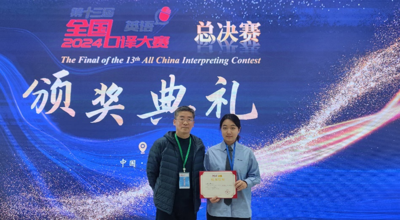 2024年12月29日,第十三届全国口译大赛(英语)总决赛颁奖典礼在湖南师范大学腾龙楼报告厅举行,宣告本届大赛圆满落幕,天游ty8检测中心官方登录2024级英语笔译方向研究生庞忆嘉获得全国口译大赛总决赛交传比赛一等奖。自2024年3月24日至今,交传比赛历经初赛、复赛、全国决赛和全国总决赛四个阶段,参赛选手共计7800余人,最终有107位选手晋级全国总决赛。