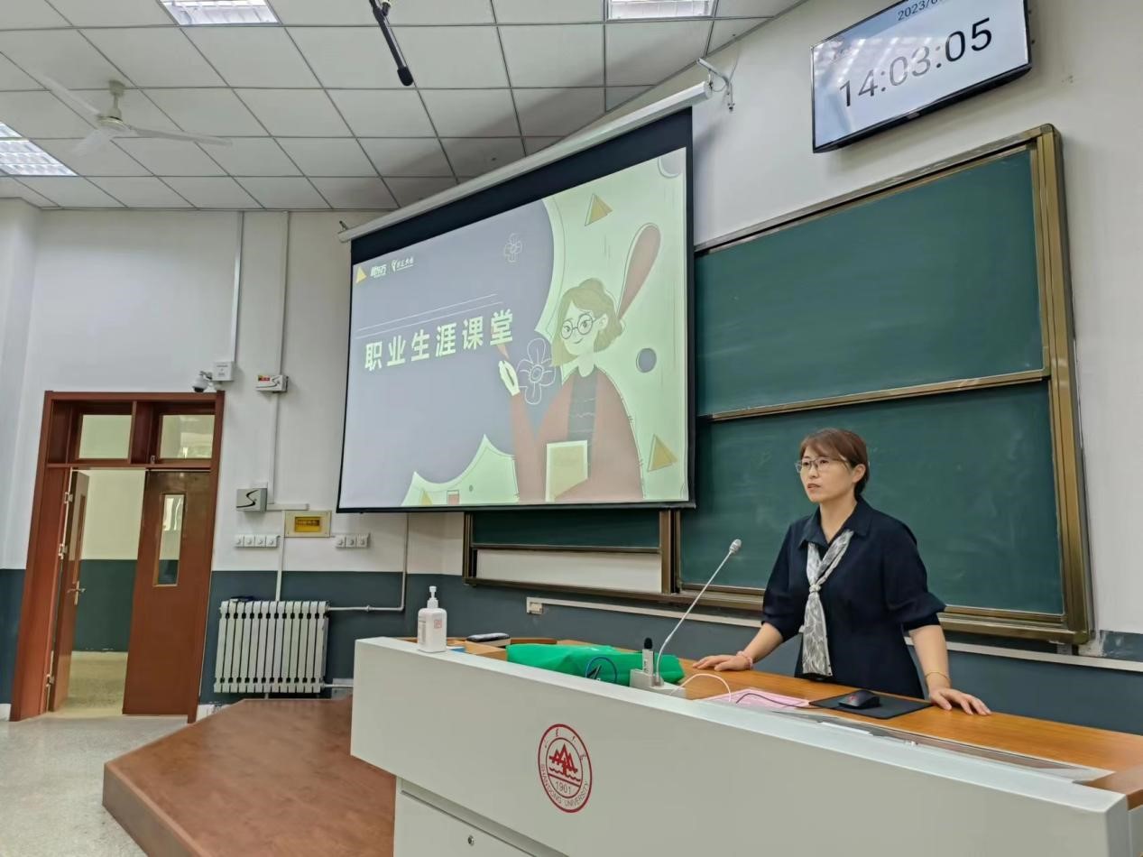 9月8日下午,天游ty8检测中心官方登录在公教楼206教室举办新生入学教育系列活动之职业生涯规划讲座,本次讲座由山东新东方前途高级人力经理张娟和天游ty8检测中心官方登录研究生辅导员张新苑主讲,研究生会张艺涵主持,研究生辅导员刘婷婷和2023级全体研究生参加。