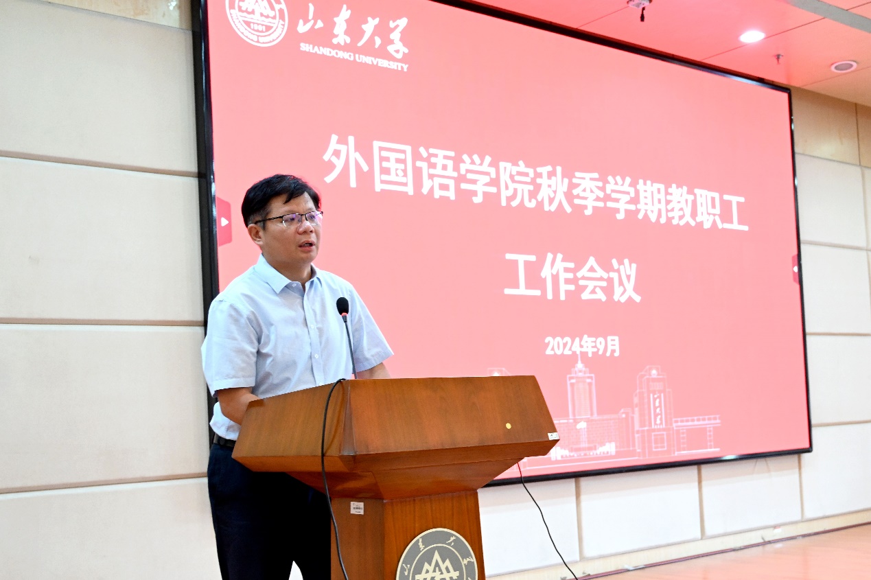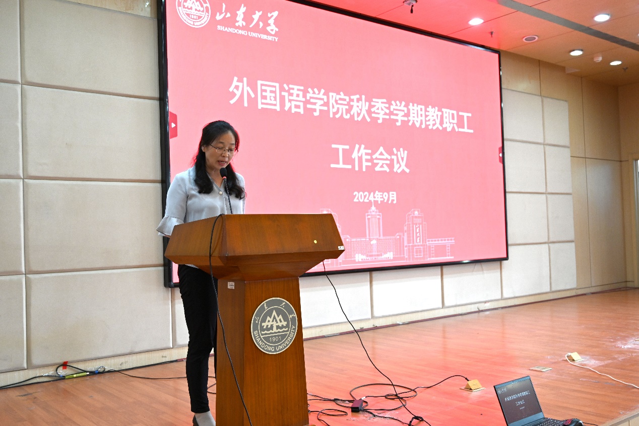 此次会议表彰了获得学院荣誉的优秀集体和个人,明确了新学期各项重点工作的任务部署,进一步凝聚了学院深化改革、实现高质量发展的共识,将激励全院教职工勇担使命、敢闯敢创,不断做强做大一流外语学科,助推学院实现全面图强。