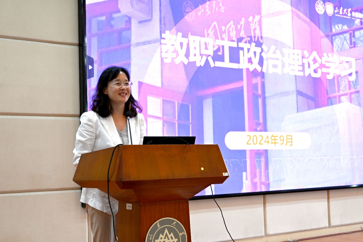 刘华重点围绕党的二十届三中全会精神、关于弘扬教育家精神加强新时代高素质专业化教师队伍建设的意见、学校第十五次党代会精神、暑期务虚会精神进行了教职工政治理论的领学。她希望全院教职工勠力同心,携手向前,并从四方面提出期待:一是把握方位,做以党和国家需求为航标的外院人;二是清晰定位,做将个人发展融入国家和学校事业发展大局的外院人;三是凝聚共识,做为学院高质量发展谋划大格局的外院人;四是守牢底线,做为学院高质量发展保驾护航的外院人。