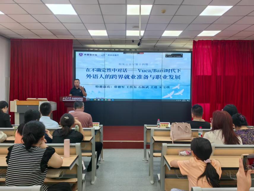 从大学时期的习惯养成,到人生选择的坚守,再到对专业本质的洞察,石振武校友的分享如同一场跨越时光的对话。在Vuca/Bani时代的不确定性中,他用数十年的实践证明:坚守热爱、夯实基础、保持成长的惯性,便是外语人穿越浪潮、实现跨界发展的核心密码。这份感悟,也为每一位在专业道路上探索的外语学子,提供了温暖而坚定的指引。