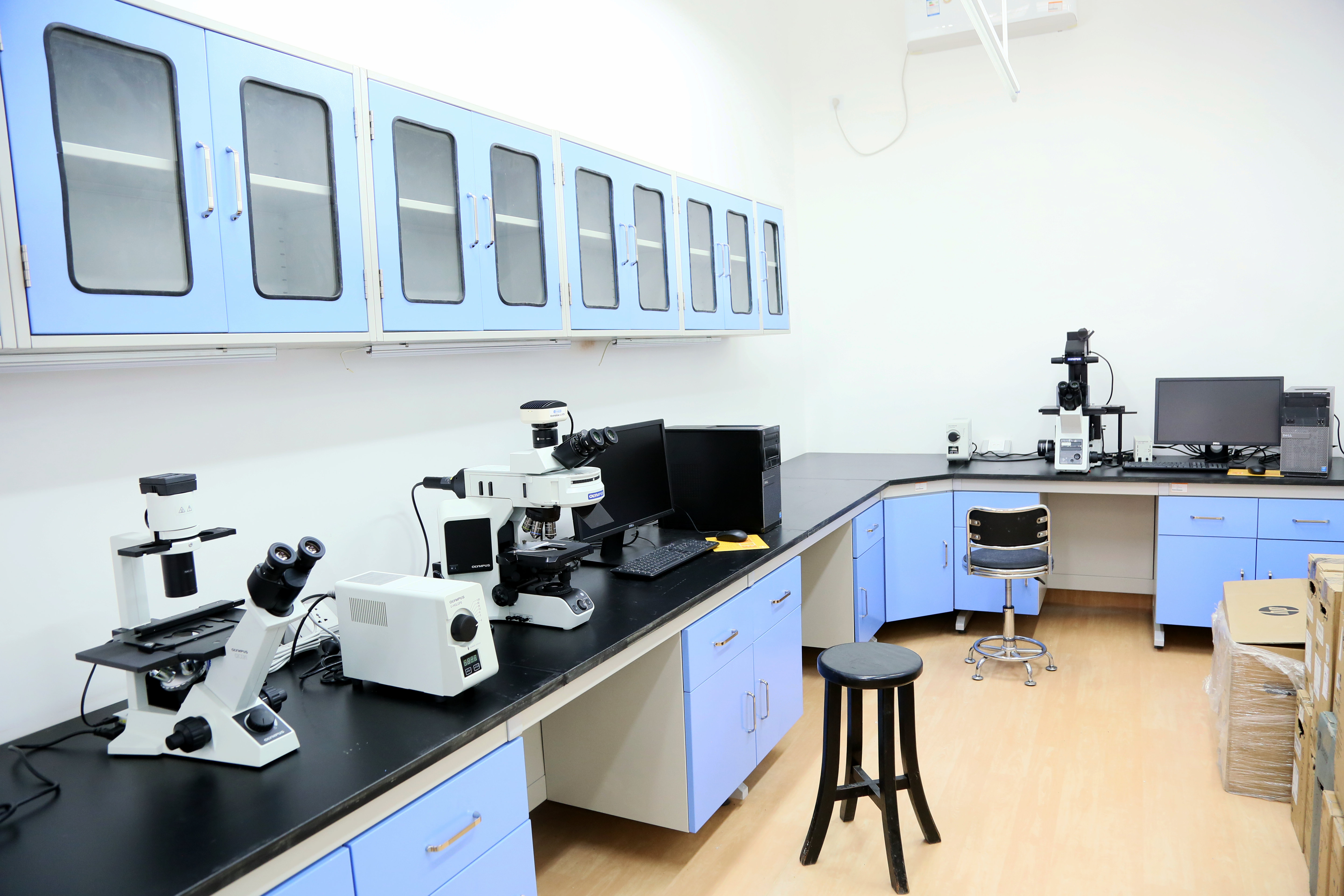 本中心面积133m²,仪器设备总值150万元,已配备普通倒置显微镜、研究级倒置荧光成像分析系统显微镜、研究级正置荧光成像分析系统显微镜、纯水/超纯水一体化系统、全波长酶标仪、二氧化碳培养箱、单道、多通道移液器、超低温冰箱、超净工作台、冰箱、摇床、水浴箱、液氮罐、离心机、通风橱等。可开展细胞培养、ELISA、微量元素测定、氧化应激检测、标本采集和保存等实验项目。