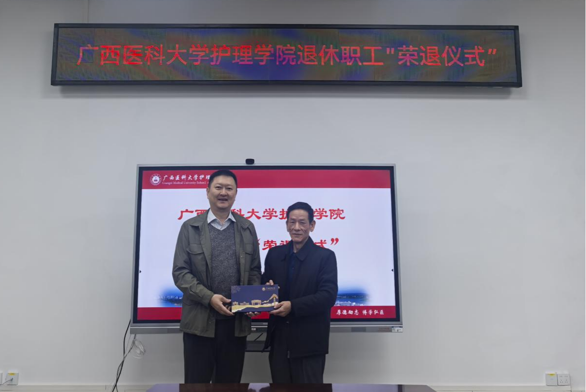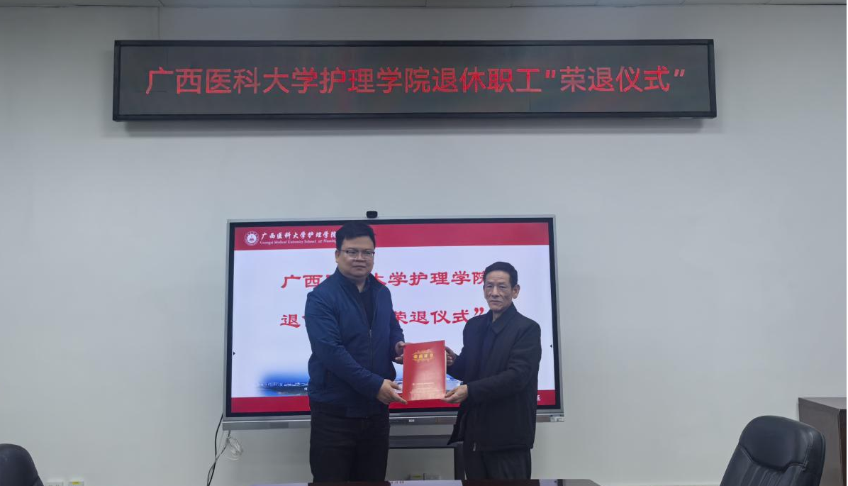 1月9日上午,beat365英国官网网站在102馆一楼会议室为退休教职工覃伟强同志举行荣誉退休仪式。学院党政领导班子成员、各职能部门代表及所在教研室全体教师参加仪式。活动由学院院长程继文主持。